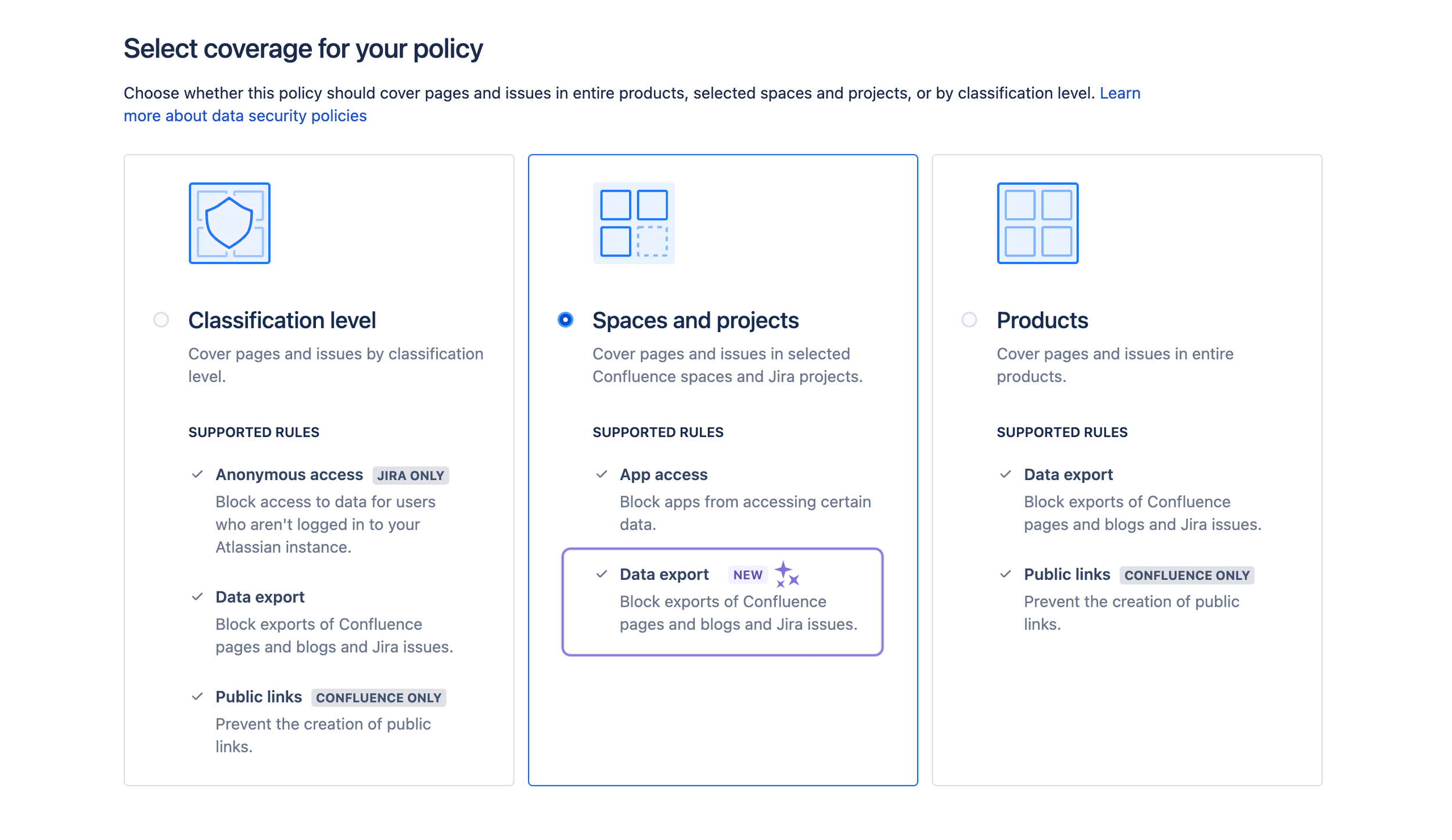 A new data security policy is coming to the platform allowing you to stop export on specified Jira projects & Confluence spaces. This is an improvement on the previous Confluence site on block.